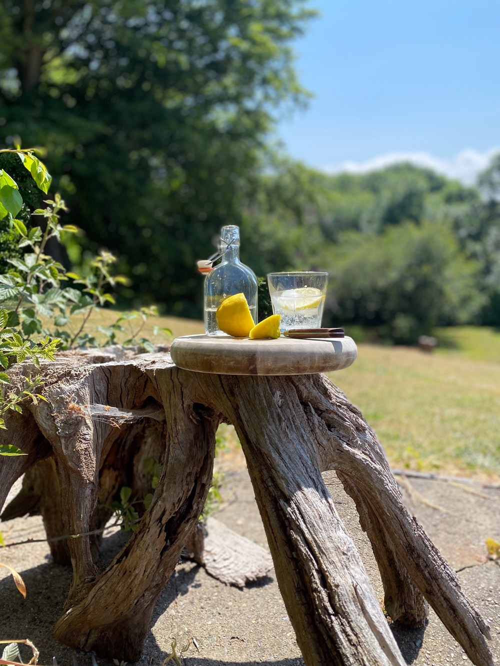 Where’s the best spot to have a gin and tonic? I fashioned a low table from an old tree stump I found, that sits at the front of the house, and that gets the full sun setting over the Menai Strait. There’s nowhere else finer for a celebratory drink when the day is done.